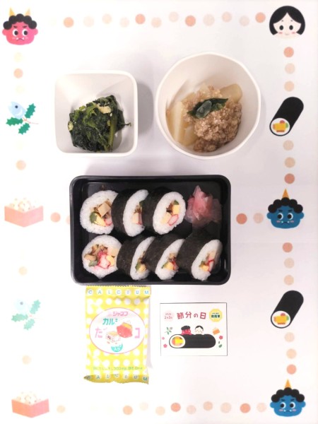 ・ほうれん草ときざみ揚げのゆず和え・節分ボーロ